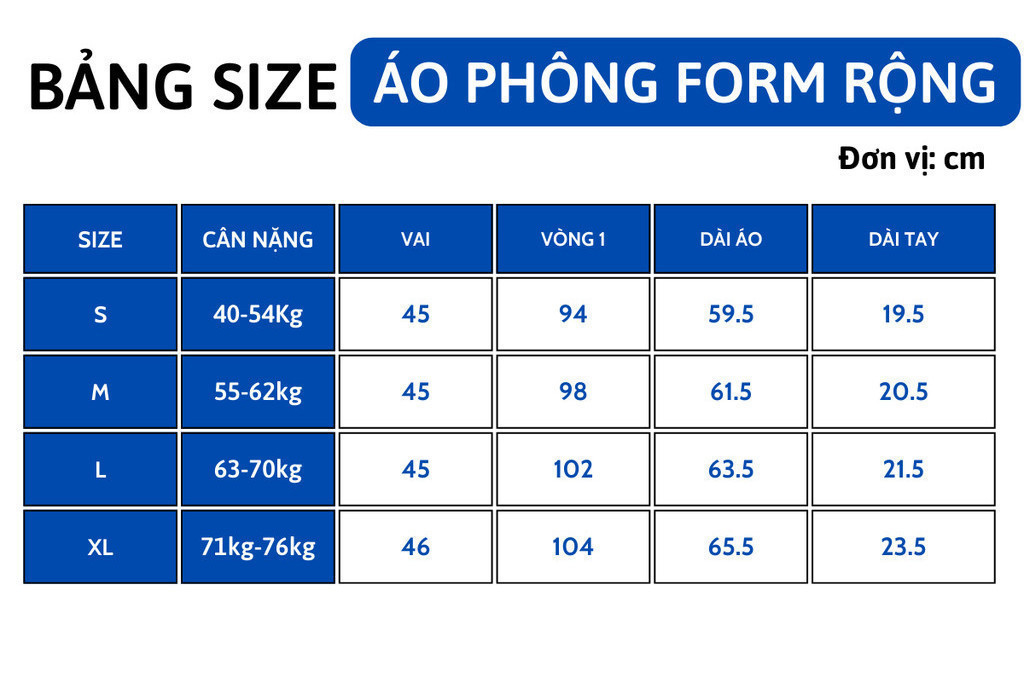 - Kiểu dáng: Áo phông chữ rộng, cổ tròn, tay cộc.