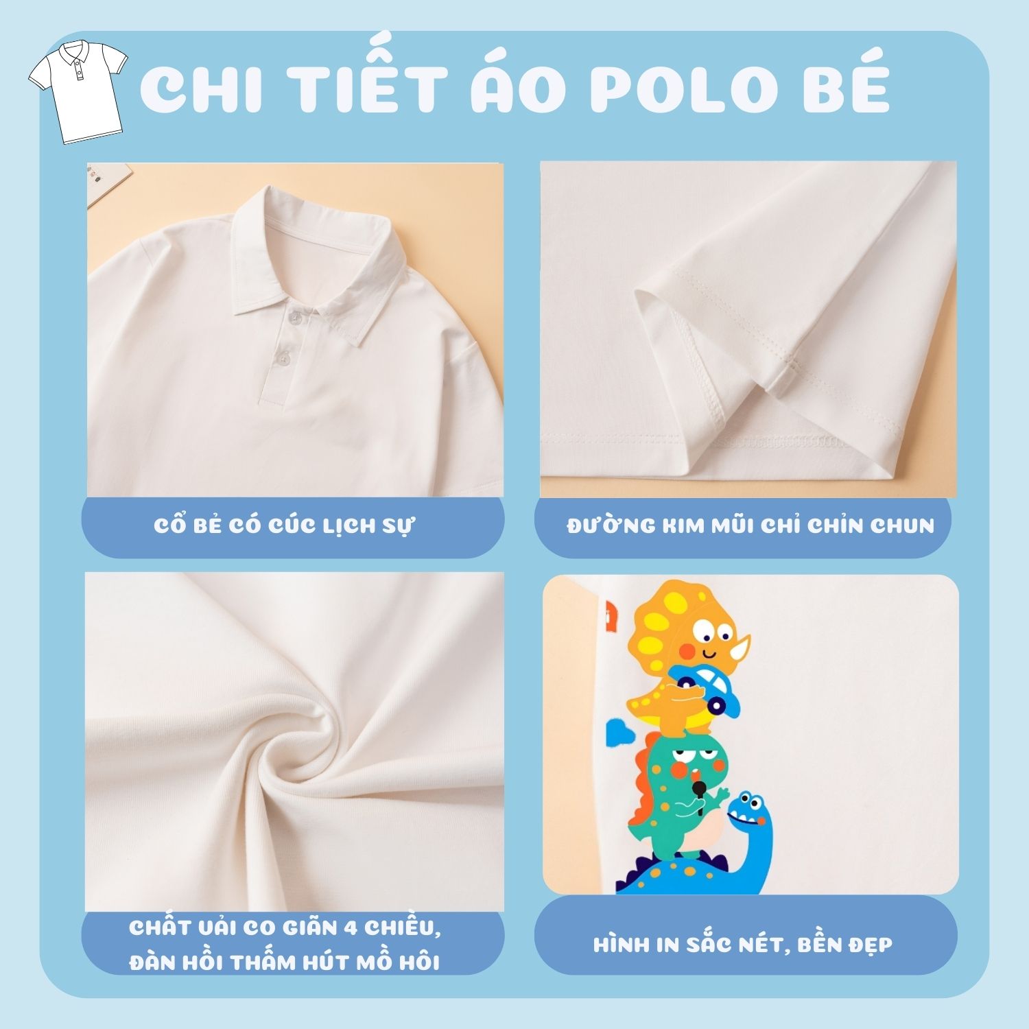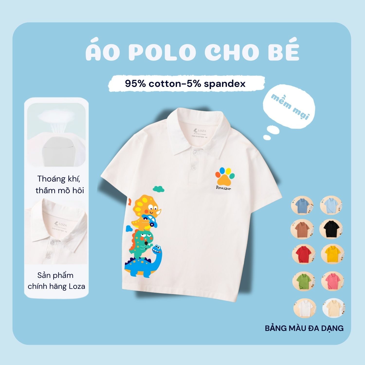Áo polo bé trai in hình Khủng long - Loza Kids PL3050