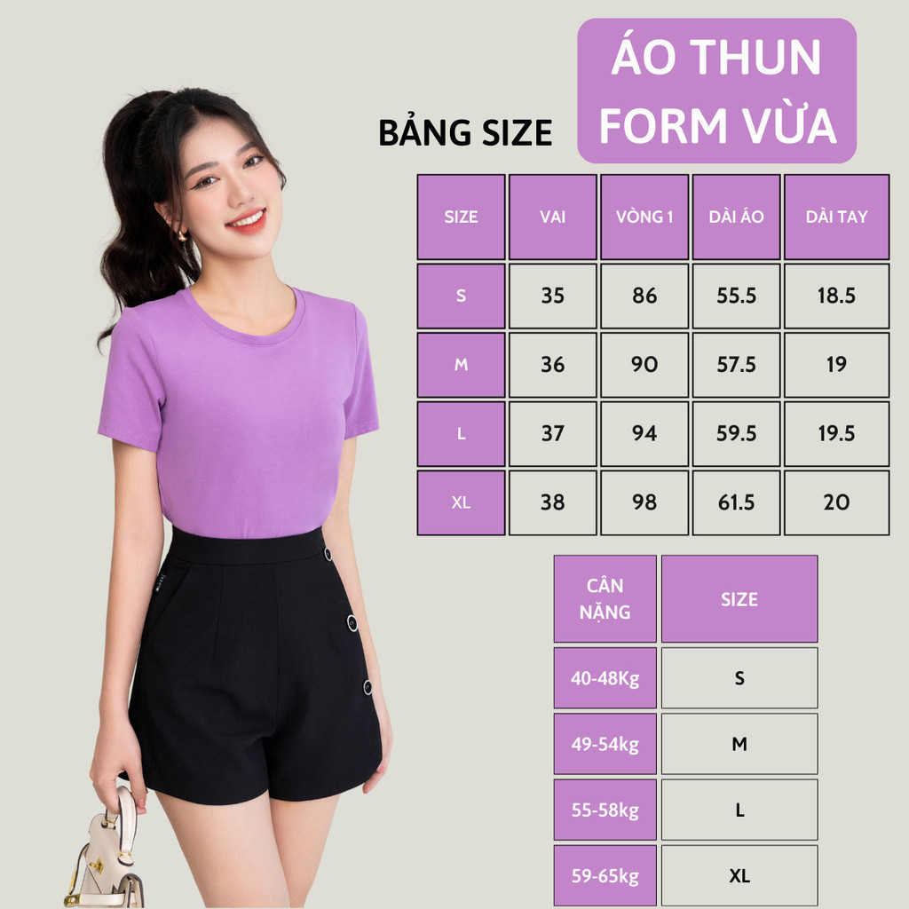 - Kiểu dáng: Áo phông form vừa, cổ tròn, tay cộc