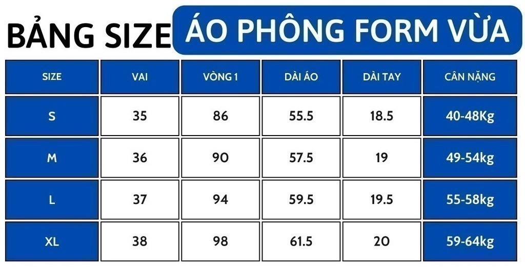 - Bảng size theo cân nặng chỉ mang tính chất tham khảo, tuỳ thuộc vào số đo cơ thể mỗi người nên khi mặc lên dáng sẽ khác nhau, quý khách vui lòng tham khảo bảng thông số sản phẩm để lựa chọn size phù hợp